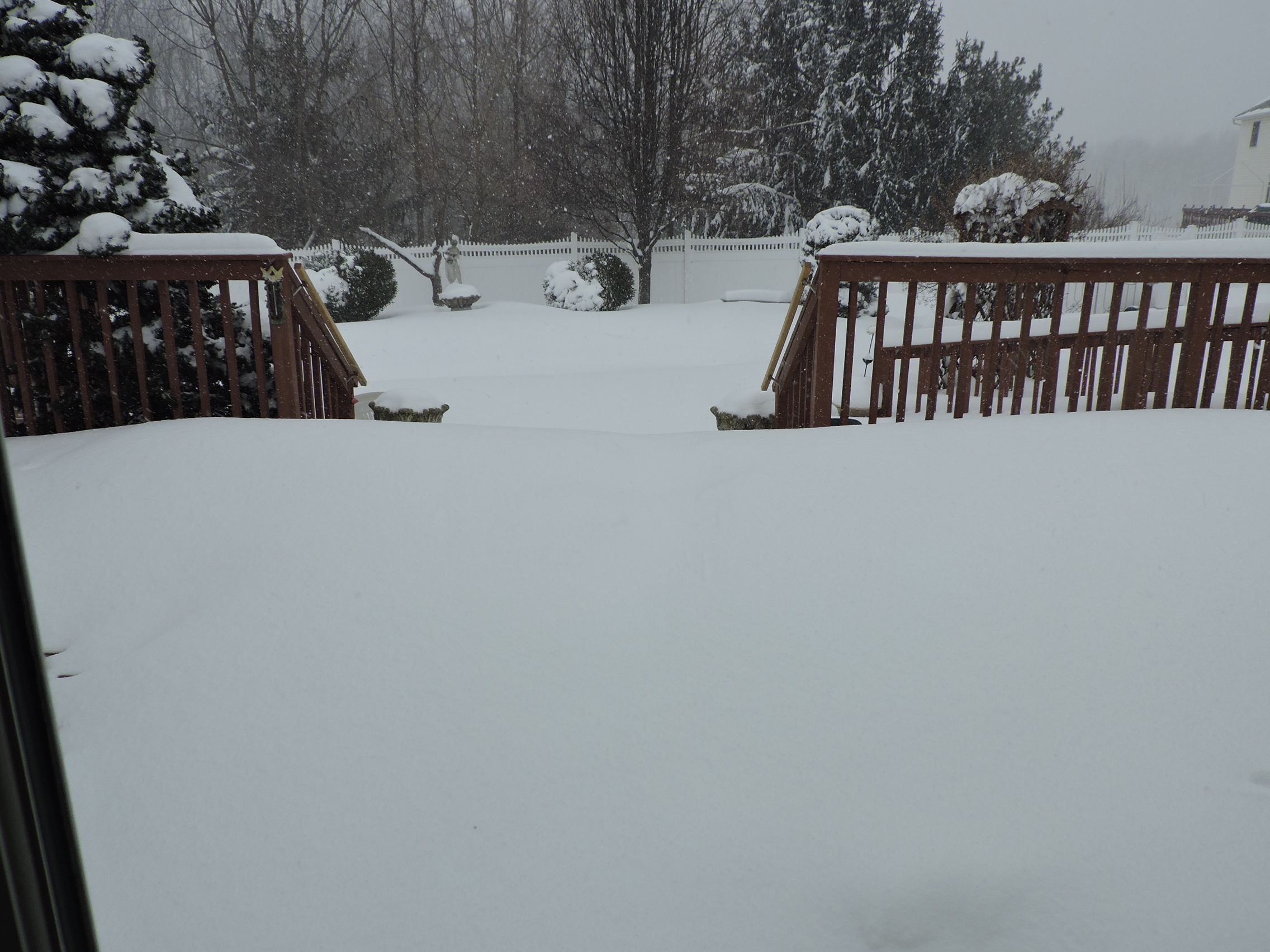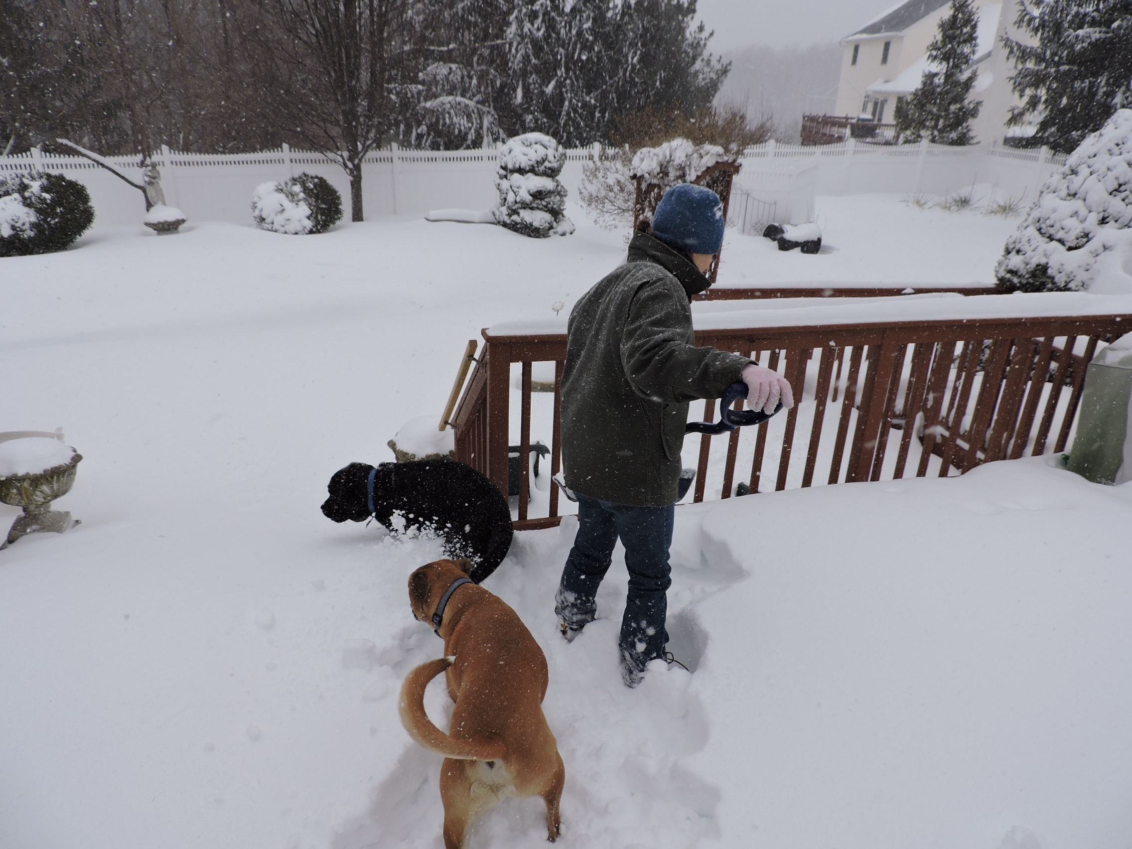 Our first order of business was to clear off a path off the deck so the dogs could get to the backyard.  They were eager to get out and play