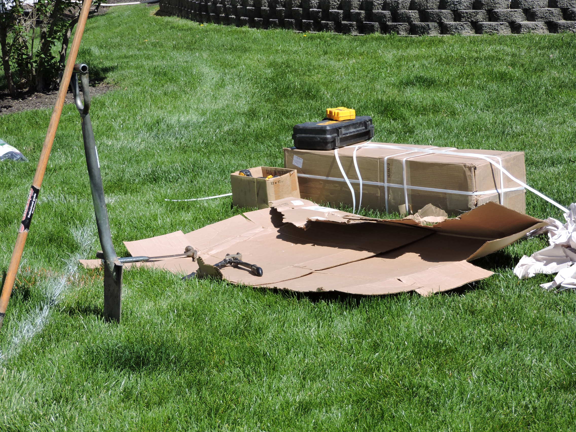 First, we had to mark out the area. I say we, but really my landscaper did the hard work. I just supervised. Spray paint and a measuring tape are all the technology you need.
