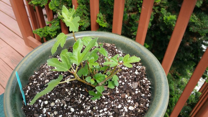 I like figs. I also refuse to be defeated by something as simple as a fig tree. My husband thinks I’m just stubborn. Maybe I am. But I’m also persistent, and I don’t like to take no for an answer. So, last summer year I put my fig plant in a big cloth planter called a Smart Pot. I brought it indoors in early December where it spent the cold months in an unheated sunroom. It went dormant, but it didn’t die. I watered it about once a month when it was really dry. Figs actually don’t mind the cold, but they don’t like cold winds and prolonged below zero temperatures. Which means that you either have to have really good protection for them, pray the winter isn’t harsh, live in a warm climate, or bring it inside during the coldest months.